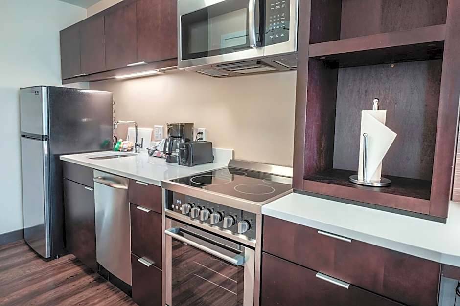 The hotel offers King Studios with a sofa bed and Queen Studios with two queen beds. Both studios do not allow smoking and accommodate a varying number of adults and children. Additionally, the hotel offers a King Studio with a sofa bed that is hearing accessible and a One-Bedroom King Suite with a sofa bed, both of which do not allow smoking and accommodate the same number of adults and children as the other rooms. The sizes of the rooms range from 355 sqft to 527 sqft.