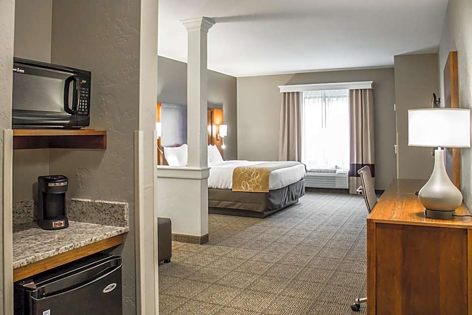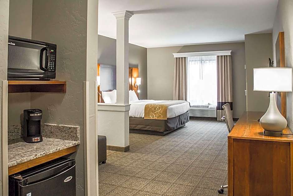 With spacious accommodations like the Queen Suite with Two Queen Beds or the King Suite with Sofa Bed, Comfort Suites provides ample space for families and groups of all sizes. Rest easy in the cozy rooms that offer a warm and inviting atmosphere, perfect for unwinding after a long day of activities. Whether you're traveling with pets or seeking rooms with disability access, Comfort Suites has thoughtfully designed accommodations to cater to your specific needs. Experience a comfortable and enjoyable stay at , where convenience meets relaxation for an unforgettable trip to Uniontown, Ohio.