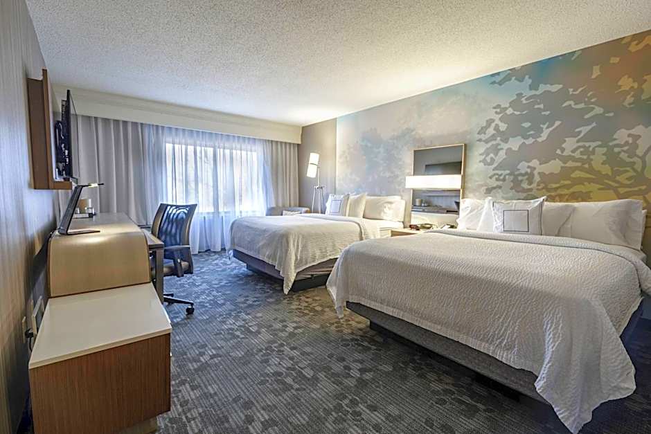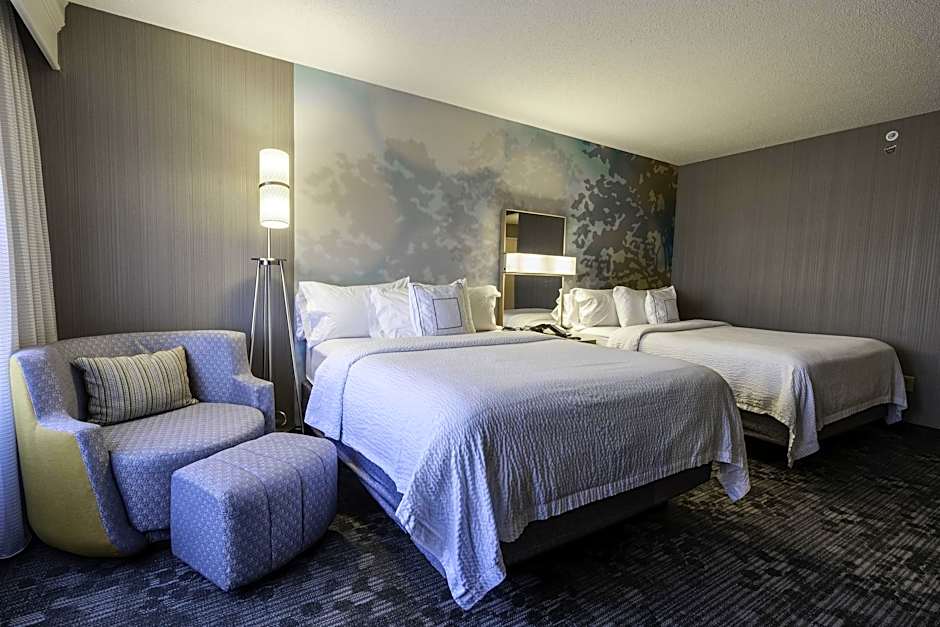 The Courtyard by Marriott Cleveland Willoughby offers Deluxe Queen Rooms with Two Queen Beds, accommodating up to 5 adults and 4 children. These rooms have a size of 323 sqft and do not allow smoking. The hotel also has Deluxe King Rooms with a similar size and no smoking allowed, accommodating up to 4 adults and 3 children, with 1 King size bed.