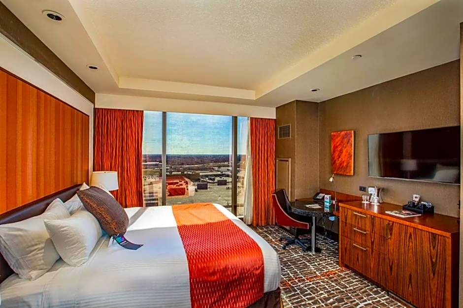 Amenities blend casino thrills with family-friendly fun: a free water park, indoor and outdoor pools (plus a kids' pool), waterslide, and spa/wellness packages; on-site casino, restaurant, and free parking with free wifi. Other standouts include a business center (free), 24-hour front desk, non-smoking rooms, terrace, garden, picnic area, elevator, and complimentary toiletries.