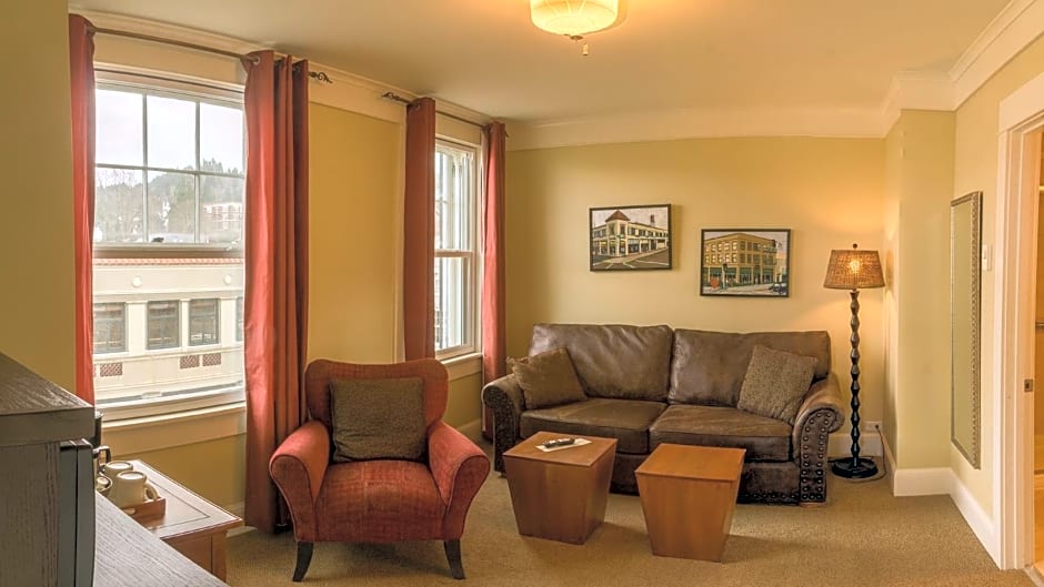 This suite features a fireplace. Featuring free toiletries and bathrobes, this suite includes a private bathroom with a bath or a shower and a hairdryer. The suite has carpeted floors, a seating area with a flat-screen TV with cable channels, a coffee machine, a wardrobe, as well as heating.