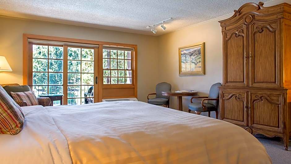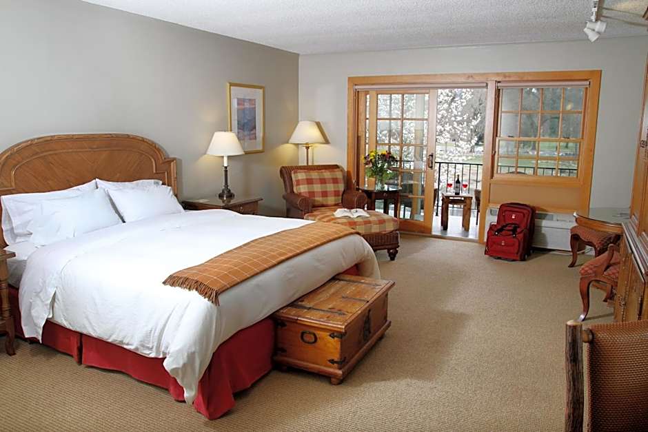 This spacious room features a single king sized pillow-top bed, cable TV with HBO, seating area, work desk and mini refrigerator. This room does not face the river.