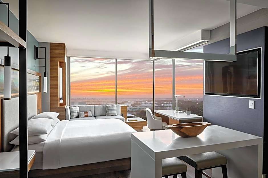 The suite provides air conditioning, a tea and coffee maker, as well as a private bathroom featuring a walk-in shower and a bath or a shower. The suite features a seating area, a sofa, a carpeted floor and a flat-screen TV with cable channels.