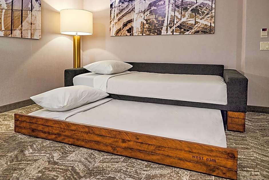 The hotel offers various types of suites at SpringHill Suites by Marriott Medford Airport. The rooms are all 355 sqft in size and do not allow smoking. The occupancy ranges from 3 adults for the King Suite with Trundle Bed, King Suite with Sofa Bed and Adapted Tub - Mobility Accessible, and King Suite with Sofa Bed - Hearing Accessible, to 5 adults for the Suite with Two Queen Beds and Sofa Bed - Hearing Accessible and Suite with Two Queen Trundle Beds. The beds range from 1 x King size bed to 2 x Queen size beds.