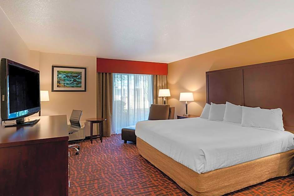 The hotel offers a variety of rooms including Queen Rooms with Two Queen Beds and Patio, Queen Rooms with Two Queen Beds, Queen Rooms with Roll-in Shower, King Rooms, Queen Rooms, and King Suites. All rooms are non-smoking and have an occupancy of 2 adults and 1 child, except for Quadruple rooms which can accommodate 4 adults and 3 children. Bed sizes range from Queen to King. The rooms are approximately 248 sqft in size.