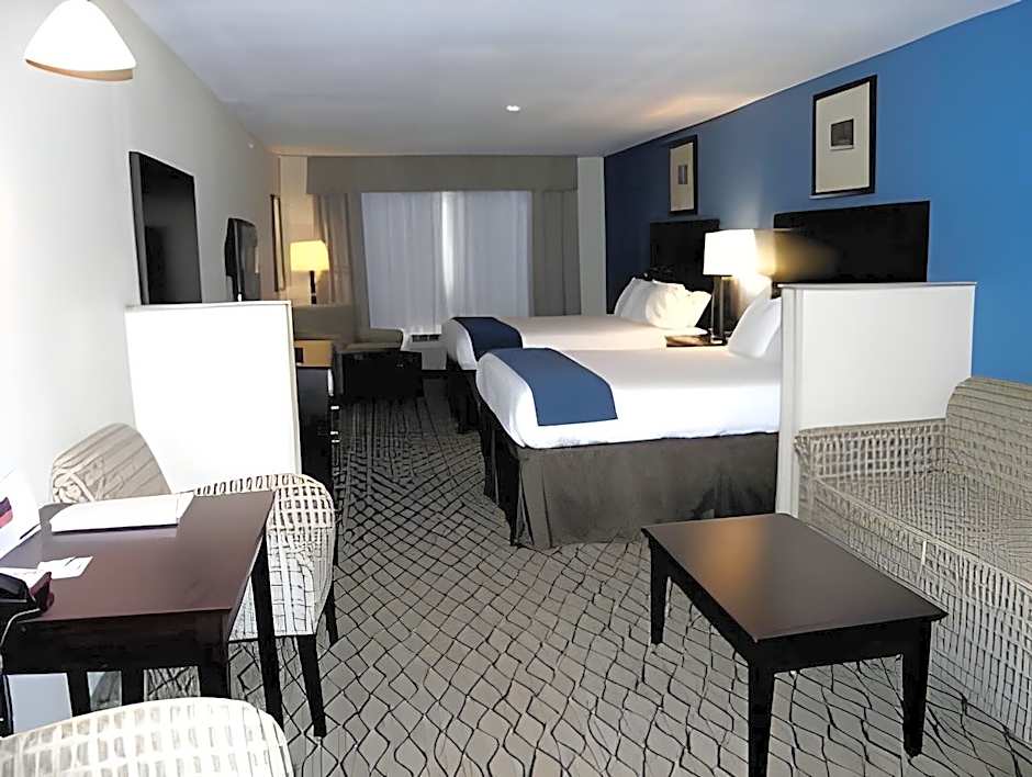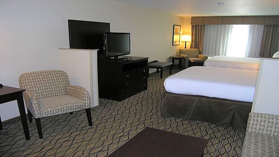 The Holiday Inn Express & Suites Belle Vernon offers a variety of room types including Queen Rooms with Two Queen Beds, King Rooms, Executive King Suites, Double Rooms with Bath Tub, and Queen Suites. All rooms are non-smoking and have a room size of 323 sqft. The occupancy ranges from 2 adults and 1 child to 6 adults and 4 children, depending on the room type.
