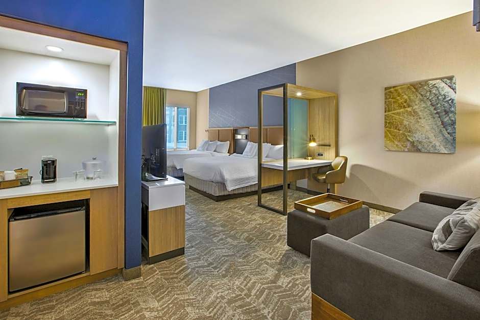 The SpringHill Suites by Marriott Pittsburgh Butler/Centre City offers a variety of suite options, including Deluxe Queen Suites and King Suites. The Deluxe Queen Suite has 452 sqft of space and can accommodate up to 6 adults and 5 children with 2 Queen size beds. The King Suite has 334 sqft of space and can accommodate up to 4 adults and 3 children with a Sofa Bed and a King size bed. Smoking is not allowed in any of the rooms.