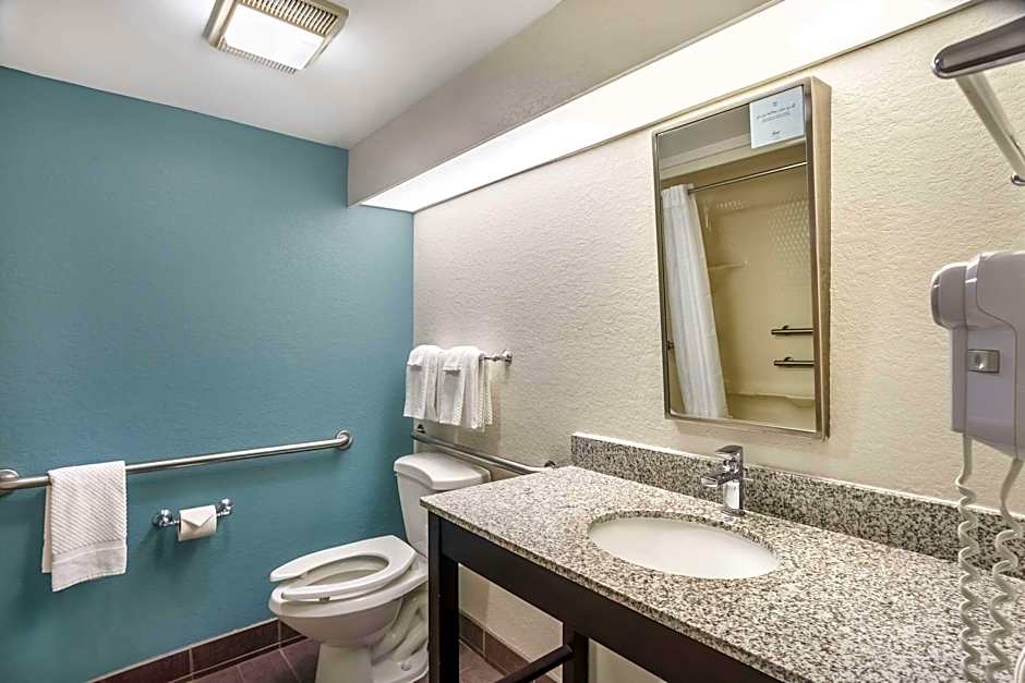The Sleep Inn near Penn State - State College offers double rooms with two double beds, queen rooms with and without a tub, as well as accessible queen rooms with a tub or roll-in shower. All rooms are non-smoking and have a room size of 301 sqft. The double rooms can accommodate 4 adults and 3 children, while the queen rooms can accommodate 2 adults and 1 child.
