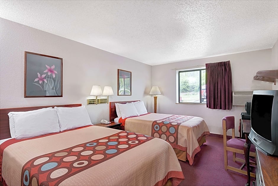 The Super 8 by Wyndham Waynesburg offers a variety of room types including Queen Rooms, Queen Rooms with Two Queen Beds, Queen Rooms with Disability Access, King Suites, Deluxe Double Rooms with Two Double Beds, and King Rooms. All rooms are non-smoking. The occupancy ranges from double to quadruple, accommodating between 2 to 4 adults and 1 to 3 children. The bed sizes vary and are not specified in the data.