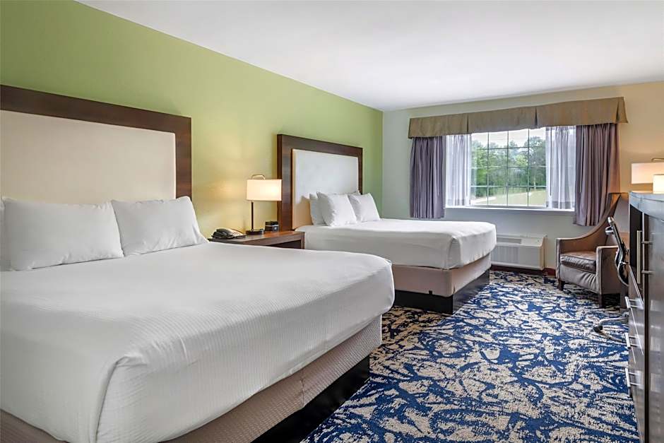 The Best Western West Greenwich Inn offers several types of rooms including Queen rooms with two Queen beds, King rooms, and Deluxe King rooms with a sofa bed. All rooms are non-smoking and vary in size from 301 sqft to 323 sqft. The Queen rooms accommodate up to 4 adults, while the King rooms accommodate 2 adults with 1 child, and the Deluxe King rooms accommodate 3 adults. The Queen rooms have two twin beds, the King rooms have a king bed, and the Deluxe King rooms have a twin bed.