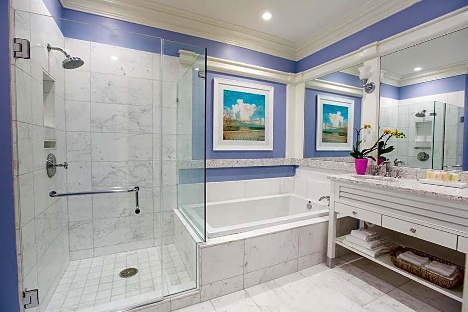 Guests can enjoy a variety of leisure amenities at The Beach Club at Charleston Harbor Resort and Marina. They can spend their time at the private beach area and relax in the outdoor swimming pool, which is heated and available all year round. The hotel also offers a spa with a hot tub and jacuzzi, where guests can indulge in full-body massages and couples' massages.