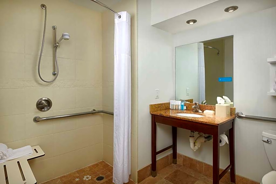 This accessible room features a 50-inch flat-screen TV, sofa bed, and bath tub.