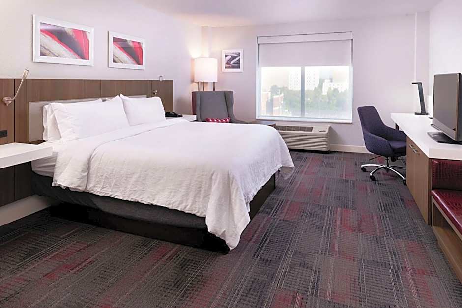 The Hilton Garden Inn Columbia Downtown offers a variety of room types. They have King Rooms with a King size bed and a room size of 301-398 sqft, Queen Rooms with Two Queen Beds and a room size of 301 sqft, and One-Bedroom King Suites with a room size of 452 sqft. All rooms are non-smoking and can accommodate 2 adults and 1 child, except for the Queen Rooms which can accommodate 4 adults and 3 children.