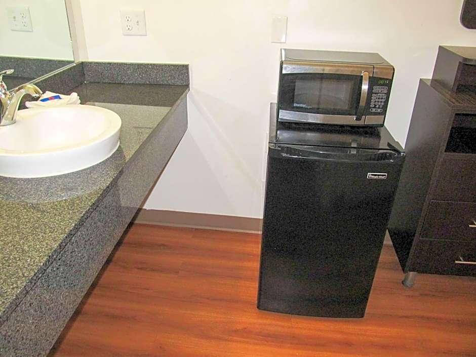This accessible room features a flat-screen TV with cable channels. A refrigerator, coffee maker, and microwave are provided as well.