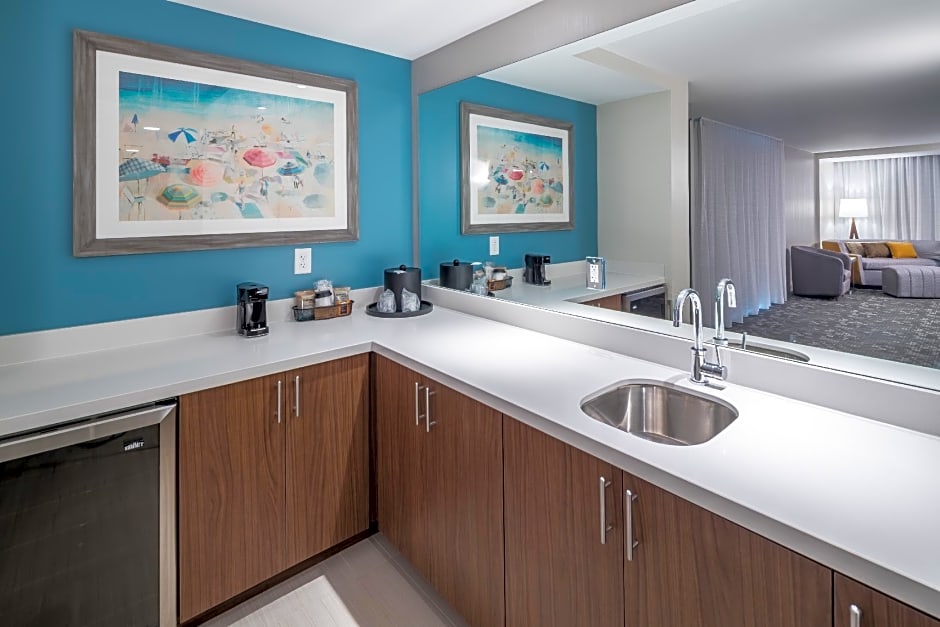 When it comes to dining, guests have multiple options. They can visit the High Tide Rooftop Bar and enjoy panoramic views while sipping on a refreshing drink. The Bistro offers a diverse menu of American cuisine, and Starbucks is also available on-site for a quick coffee fix.
