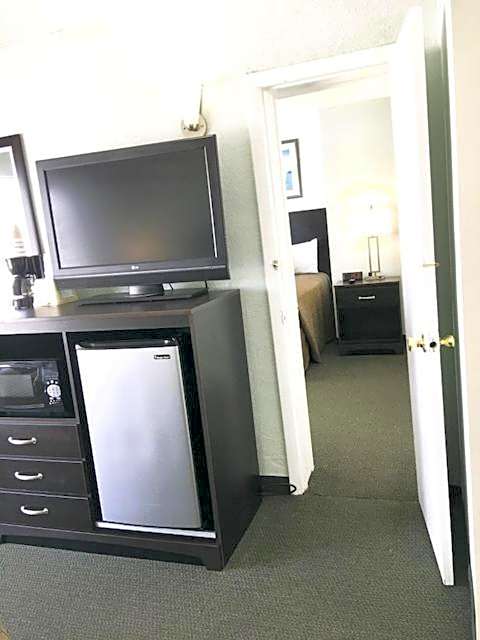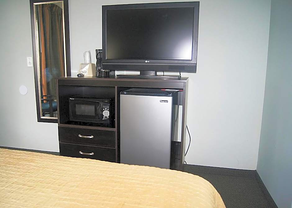 Room features a microwave, a small refrigerator, and cable TV.