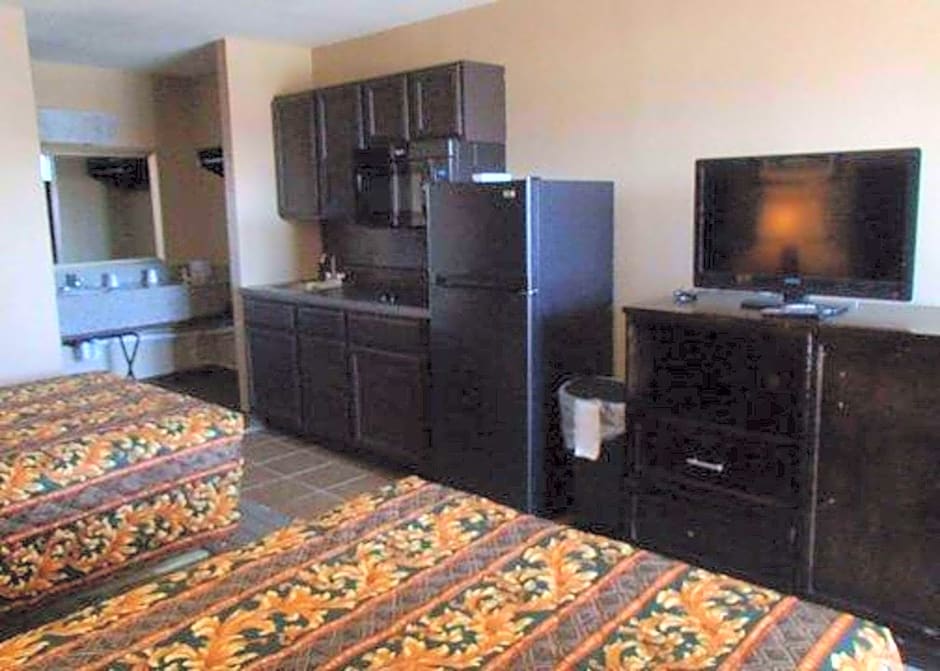 This efficiency guestroom includes a microwave, refrigerator, and a 32-inch flat-screen TV.