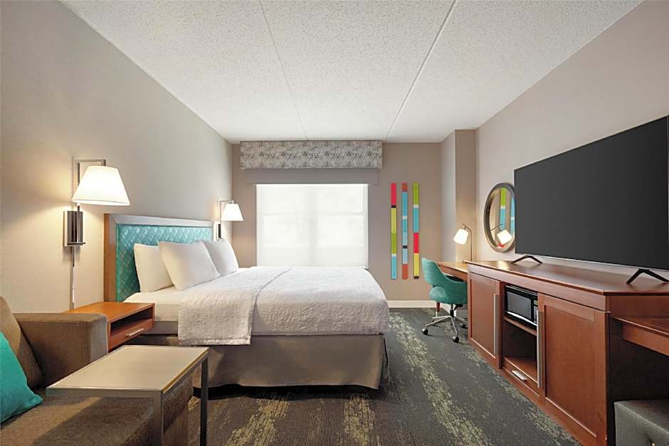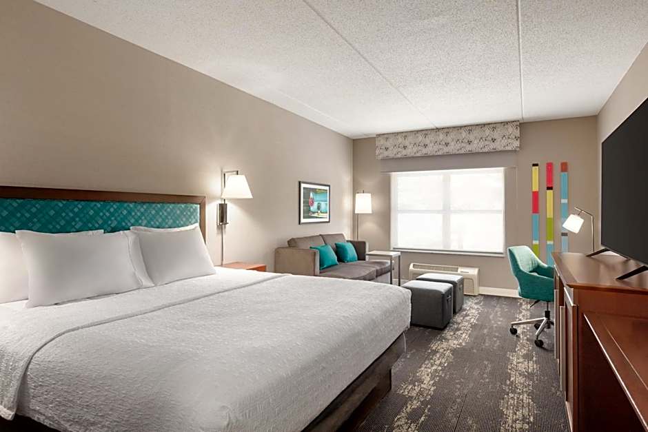 Now, let's talk about the fantastic room types available at the hotel. If you're looking for a spacious and luxurious option, consider the One-Bedroom Suite with Spa Bath. With a room size of 5382 square feet and accommodating up to 4 adults and 3 children, you'll have plenty of space to relax and unwind. If you prefer a king-sized bed, the King Room is a great choice, accommodating 3 adults and 2 children. And for larger groups, the Queen Room with Two Queen Beds can accommodate 5 adults and 4 children. Finally, the King Suite offers a comfortable stay for 4 adults and 3 children, with a king-sized bed and a sofa bed available. No matter which room type you choose, you can expect a comfortable and enjoyable stay at the Hampton Inn.