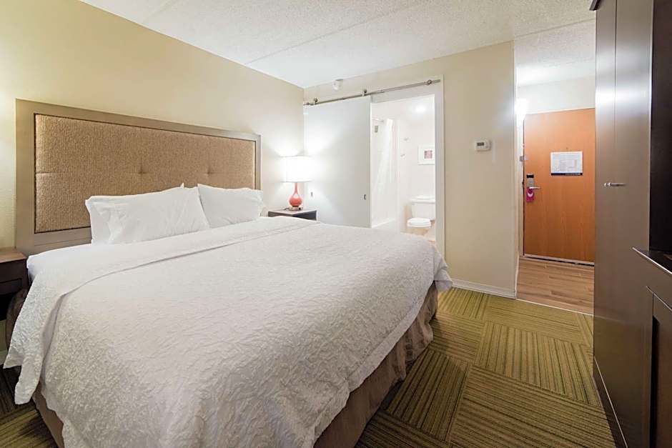 Views, free WiFi, 32-inch TV, sofa bed, coffeemaker, work desk, shower This spacious non-smoking guest room features our clean and fresh Hampton king-sized bed®, a comfortable sofa bed, and a 32-inch LCD TV. Catch up on work at the desk or surf the web with free WiFi access. Refresh in the bathroom which a WaterPik showerhead and curved shower rod that allows more light and space in the shower. No roll away beds or cots available per Fire Marshall.