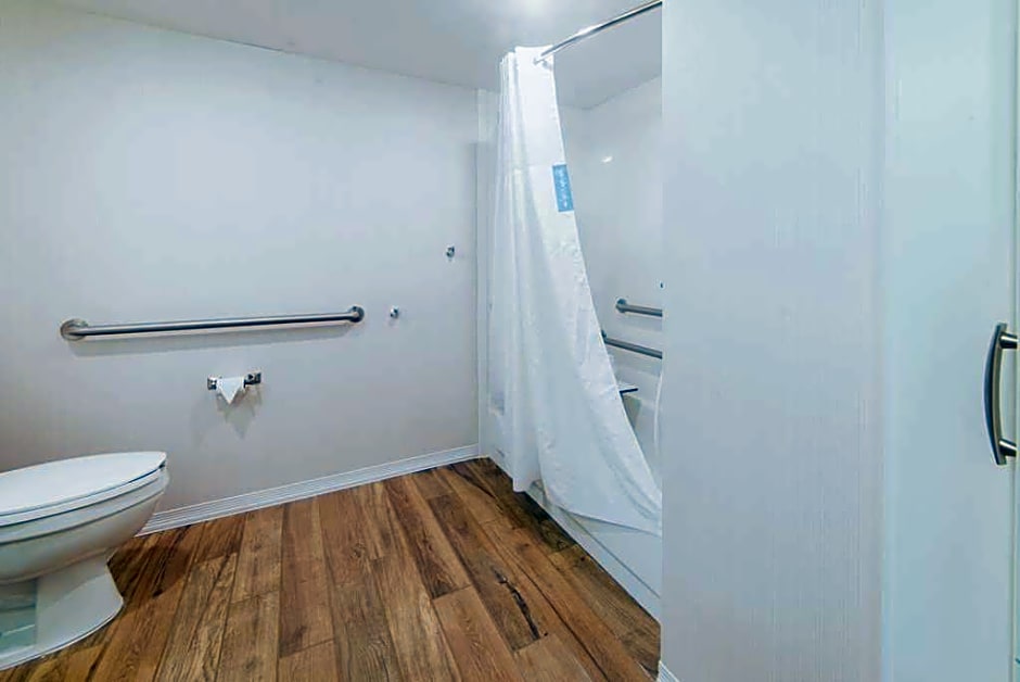 This disability accessible room features a bath tub, cable TV, and a desk.