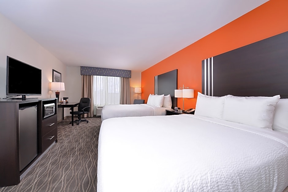 Quality Inn & Suites offers rooms with 1 King bed or 2 Queen beds, accommodating 2 adults and 1 child in each. Smoking is not allowed in any of the rooms. Bed sizes include King and Queen, with accessible options available.