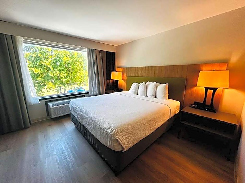 1 King Bed Mobility Accessible Suite Bathtub W/ Grab Bars Non-Smoking is 11 square feet and includes a king-size bed 150-183 width plus desk and hairdryer and is Wheelchair-accessible.