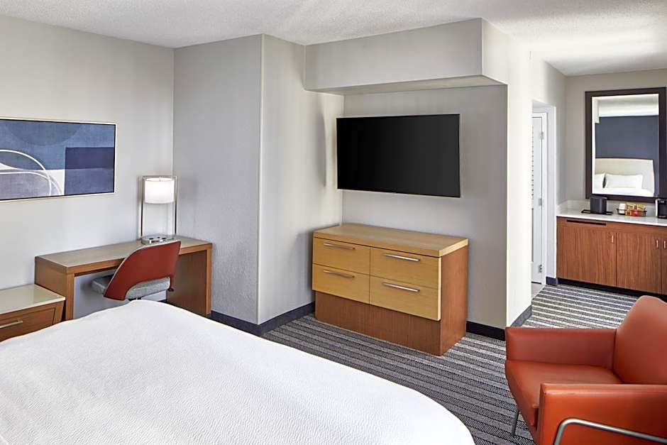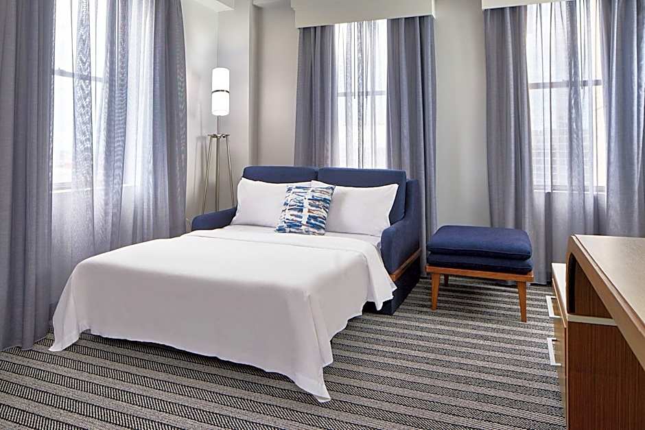 The Courtyard by Marriott Nashville Downtown offers a variety of room types. These include King Rooms, Extended King Rooms, Suites, Large Rooms with Two Double Beds, and Double Rooms with Two Double Beds. All rooms are non-smoking and range in size from 151 sqft to 323 sqft. The rooms can accommodate between 3 to 5 adults and 2 to 4 children, depending on the specific room type. The bed sizes vary, with options for King size beds, Queen size beds, and sofa beds in some rooms.