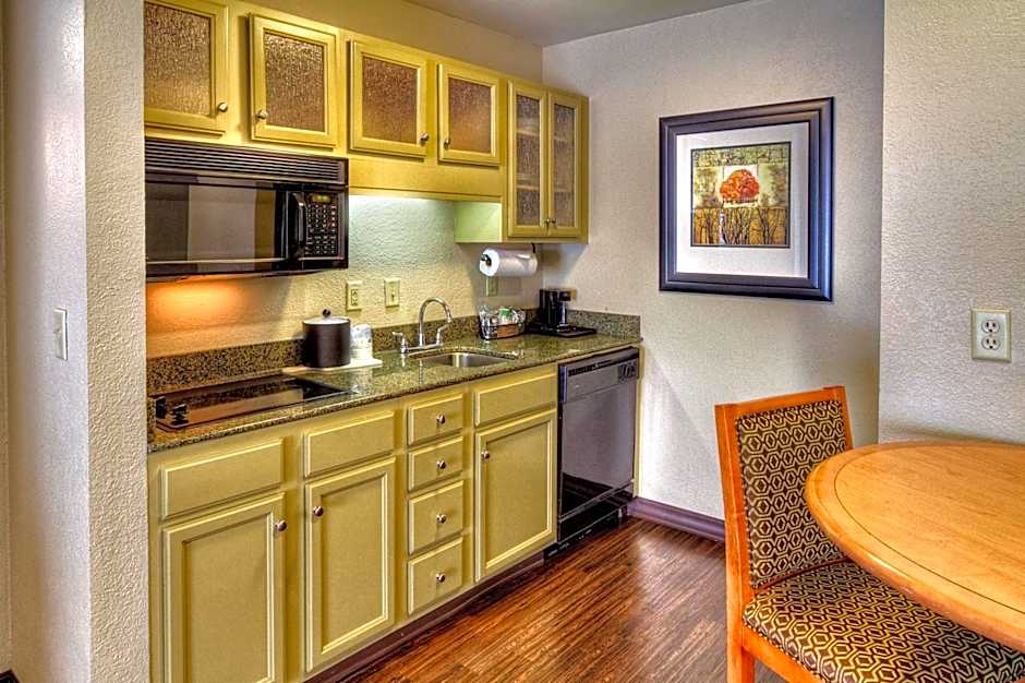 Free WiFi, full kitchen, sofa bed, two HDTVs, refrigerator, microwave, cooking top This beautiful, two room non-smoking suite provides two queen-sized beds and a separate seating area with a convenient sofa bed for extra guests. Relax in the living room and watch a movie on one of the 2 HDTVs or catch up on work at the desk and stay connected with free WiFi access. Enjoy a freshly brewed coffee from the coffeemaker. The fully equipped kitchen provides a cooking top, refrigerator, microwave, dishware and utensils, making it easy for you to enjoy your own snacks and meals.