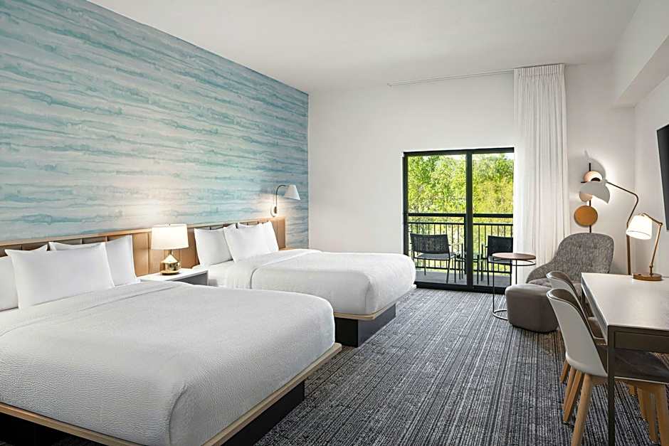 Studio, 2 Queen Beds, Corner, Balcony, Partial River View