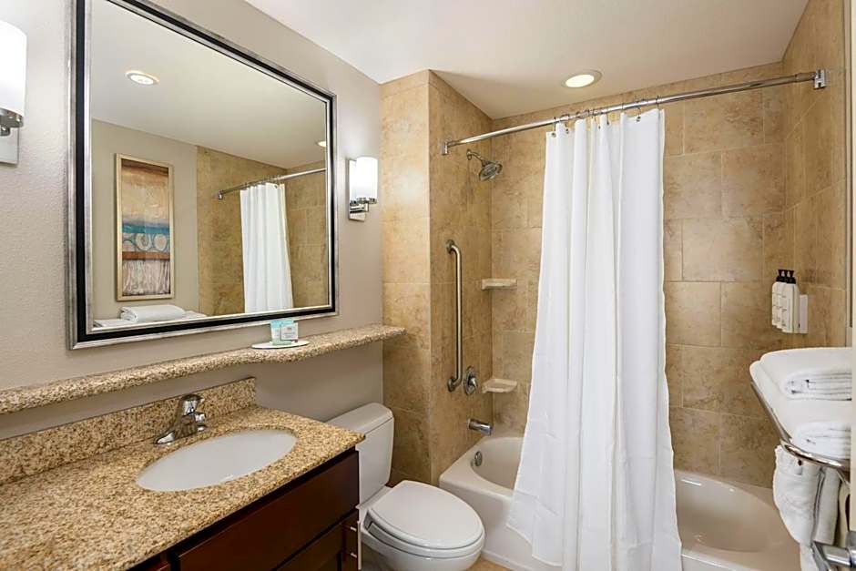 The hotel offers Studio Suites with Two Queen Beds and Sofa Bed, Queen Studios, King Studio Suites with Sofa Bed, and King Studios. All rooms have a maximum occupancy of 5 adults and 4 children, except for the King Studio Suites with Sofa Bed which can accommodate 4 adults and 3 children. Smoking is not allowed in any of the rooms. The Queen Studios and King Studios have a room size of 398 sqft.