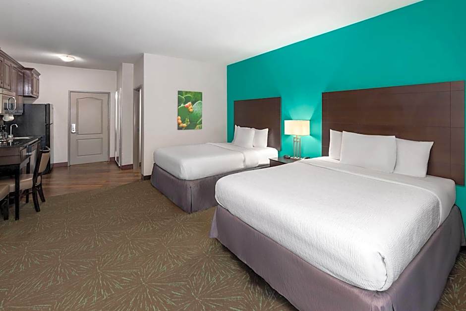 The hotel offers various types of rooms including King Rooms, King Suites, Studios with Two Queen Beds, Queen Rooms with Two Queen Beds, and Queen Efficiency Rooms. All rooms are non-smoking. The King Rooms and King Suites accommodate 2 adults and 1 child, while the Studios and Queen Rooms accommodate 3 adults and 2 children. The Queen Efficiency Rooms can accommodate up to 5 adults and 4 children. All room types have different bed sizes, ranging from 1 King size bed to 2 Queen size beds.