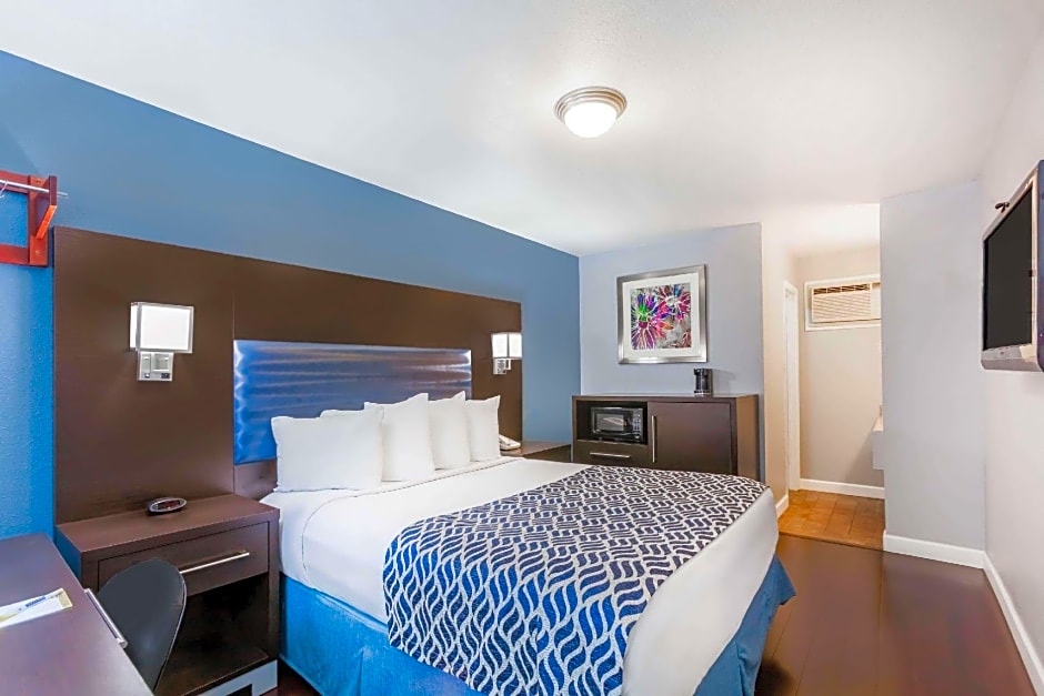 This air-conditioned room offers a refrigerator, microwave, and wheelchair accessibility.