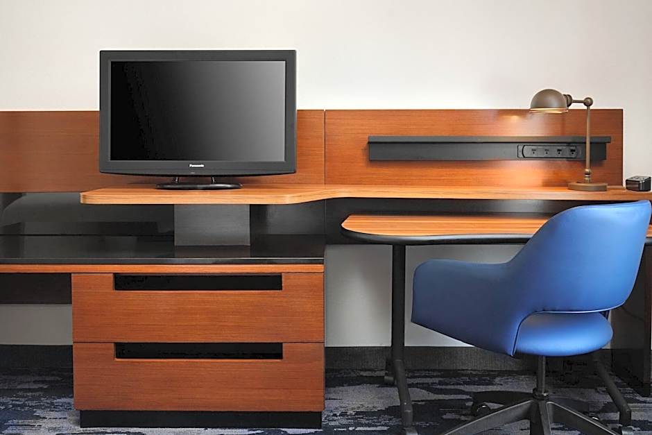 A work desk and a flat-screen TV with premium cable channels are included in this room.