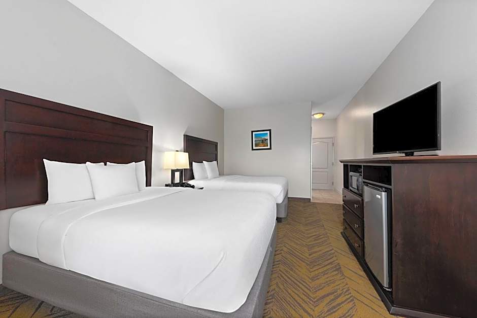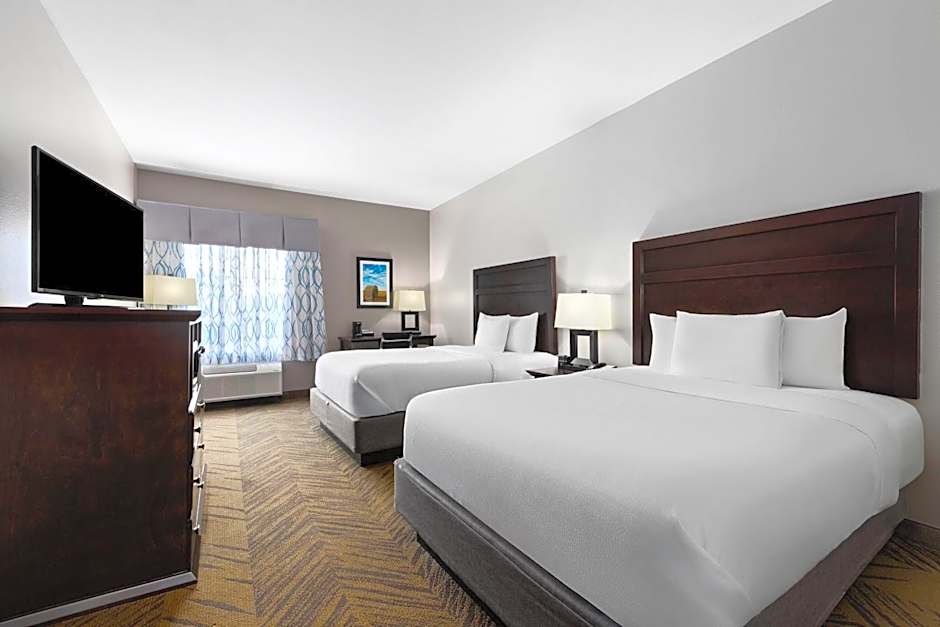 At La Quinta by Wyndham Brookshire West Katy, there are various room options available. These include a Deluxe King Room with Bath Tub, an Executive King Room, a Deluxe Queen Room with Two Queen Beds, a Deluxe King Room, a Queen Room with Two Queen Beds and Bath Tub, and a Deluxe King Suite. All rooms are non-smoking and range in size from 301 sqft to 355 sqft. The rooms can accommodate between 3 to 5 adults and 2 to 4 children, and the bed sizes vary from King to Queen.