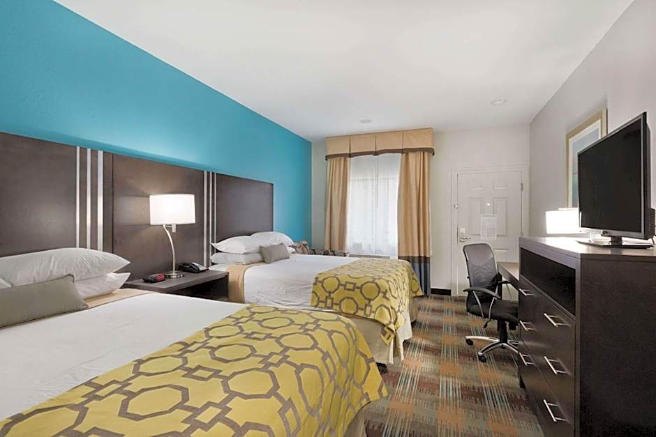 The Baymont by Wyndham Bryan College Station offers a variety of room types including quadruple rooms, suites, and double rooms. All rooms are non-smoking and have different bed sizes ranging from queen to king. The occupancy ranges from 2 adults and 1 child to 4 adults and 2 children. Some rooms also have accessibility features such as roll-in showers and mobility/hearing accessibility.