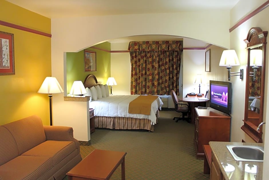 The Budget Host Inn and Suites Cameron offers a variety of room types, including King Suites, Superior King Suites, King Suites with Sofa Bed, and Queen Rooms with Two Queen Beds. All rooms have a size of 409 sqft, except for the Queen Rooms which are 334 sqft. Smoking is not allowed in any of the rooms. The King Suites and Superior King Suites accommodate 2 adults, while the Queen Rooms can accommodate 2 adults and 2 children.