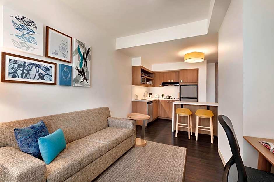 The hotel offers a variety of room options including a 1 Bedroom Suite with a King size bed and sofa bed, a Studio with a King size bed and sofa bed, and a Studio with 2 Queen beds. All rooms are non-smoking. The occupancy of the rooms ranges from 2 adults, 2 children to 4 adults, 3 children. The sizes of the rooms vary from 344 sqft to 495 sqft.