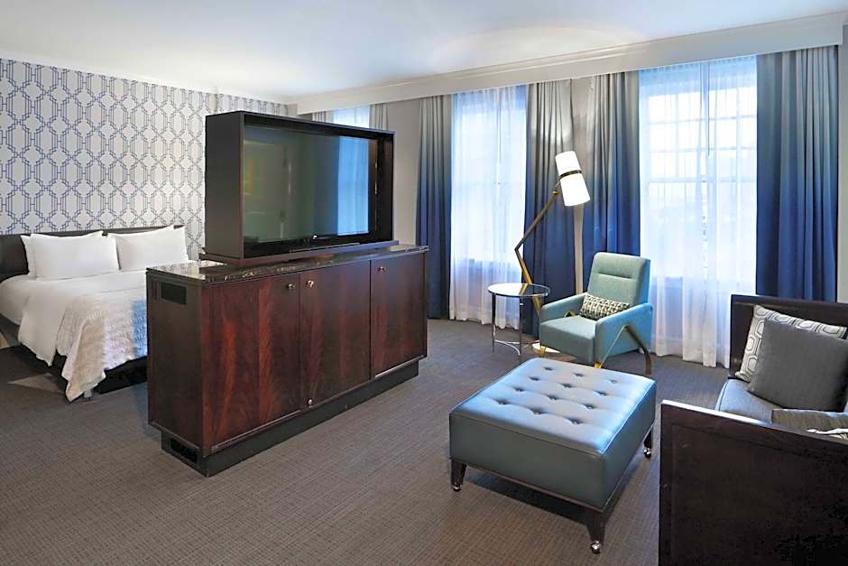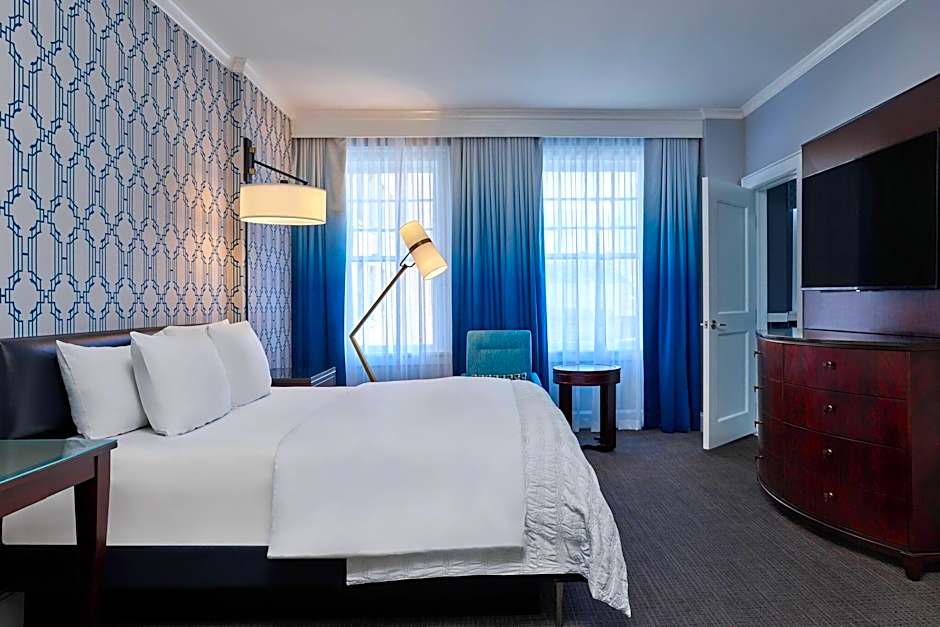 Le Meridien Dallas, The Stoneleigh offers a variety of room types including guest rooms with 2 queen beds, superior guest rooms with 1 king bed, junior suites with 1 king bed and a sofa bed, executive guest rooms with 1 king bed and a sofa bed, guest rooms with 1 king bed, and king rooms with a roll-in shower that are both mobility and hearing accessible. All rooms are non-smoking and can accommodate 2 adults and 1 child. Bed sizes range from king size to queen size.