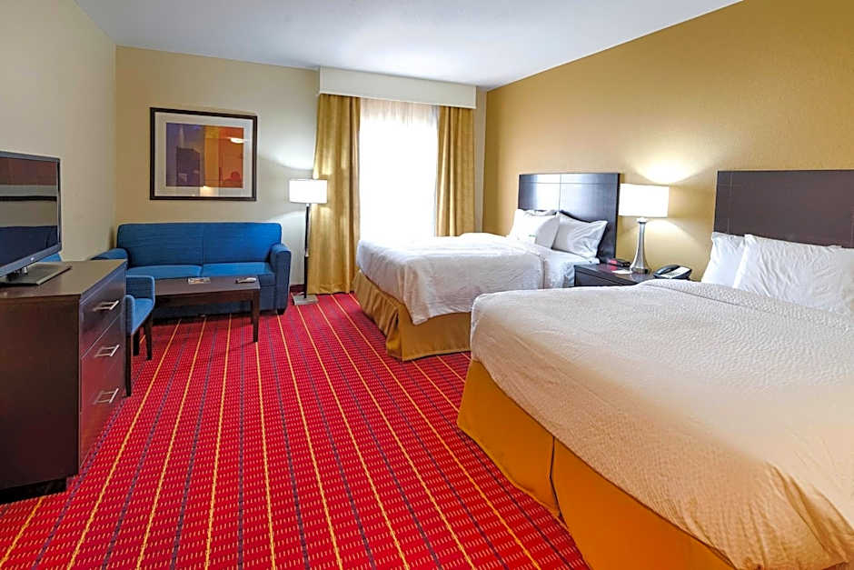 TownePlace Suites by Marriott El Paso Airport offers various room types including Studio Suites with 1 King Bed and a Sofabed, Queen Studios with Two Queen Beds and a Sofa Bed, and King Studio Suites with a Sofa Bed. These rooms do not allow smoking and accommodate between 2 adults/1 child to 4 adults/3 children. Bed sizes range from King to Queen, with room sizes around 323 sqft.