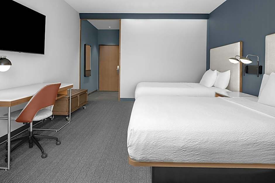 The Courtyard by Marriott Houston I-10 West/Memorial offers a Double Queen Room with two queen size beds and a Double King Room with a king size bed and a sofa bed. Both room types have a room size of 301 sqft and do not allow smoking. The Double Queen Room accommodates up to 4 adults and 3 children, while the King Room with Sofa Bed accommodates up to 3 adults and 2 children.