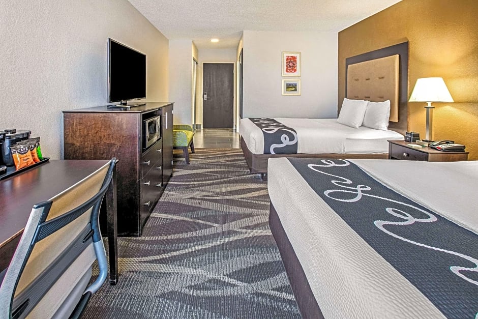 La Quinta by Wyndham Dallas - Las Colinas offers various types of rooms. These include an Executive Queen Room with Two Queen Beds, a Queen Room with Two Queen Beds and Bath Tub - Mobility/Hearing Accessible, an Executive King Room, a Queen Room with Two Queen Beds, a King Bed - Mobility/Hearing Accessible Room, Bathtub w/ Grab Bars, and a King Room. Smoking is not allowed in any of the rooms. Occupancy ranges from 3 to 6 adults, with bed sizes of either 2 Queen size beds or 1 King size bed. Room sizes range from 312 sqft to 420 sqft.