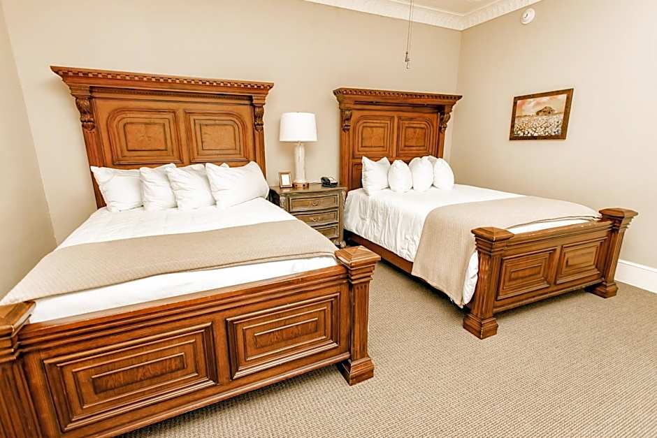The Grand Hotel offers a variety of rooms including Deluxe King Rooms and Queen Rooms with Two Queen Beds. The Deluxe King Room is for single occupancy and has a king-size bed, accommodating 1 adult and 1 child. The Queen Room with Two Queen Beds is also for single occupancy and has two queen-size beds, accommodating 1 adult and 3 children. Smoking is not allowed in either of these rooms.