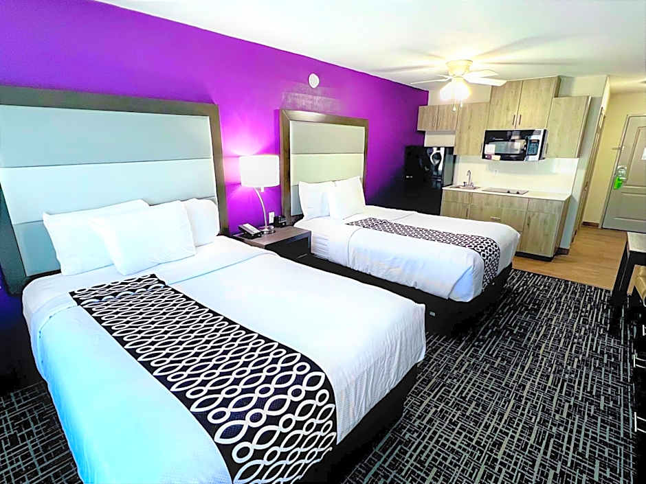 La Quinta by Wyndham Pharr North McAllen offers a variety of rooms including Deluxe Queen Rooms with Two Queen Beds, Deluxe Double Suites, Executive Queen Rooms with Sofa Bed, Deluxe King Suites with Mobility/Hearing Impaired Access, Executive King Rooms, Junior Queen Suites, Apartments, King Suites, King Rooms with Disability Access, and Deluxe King Rooms. All rooms are non-smoking and range in size from 301 to 398 square feet. The occupancy varies, accommodating either 2 or 4 adults with up to 3 children. Bed sizes range from Queen to King, with some rooms also having sofa beds.