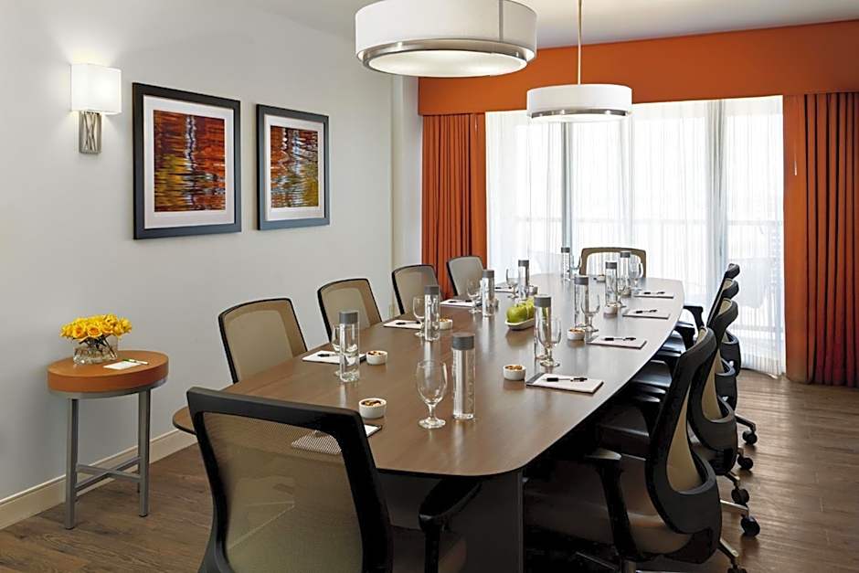 In the evening, guests can enjoy live music performances at the hotel. The hotel's restaurant, Windows on the River Restaurant & Lounge, offers a modern ambiance and serves American cuisine.