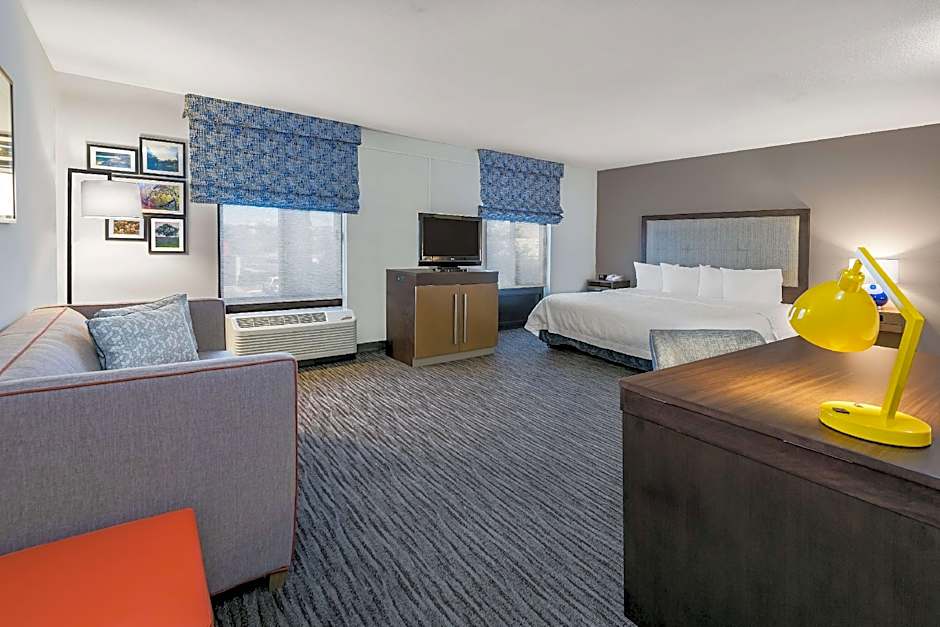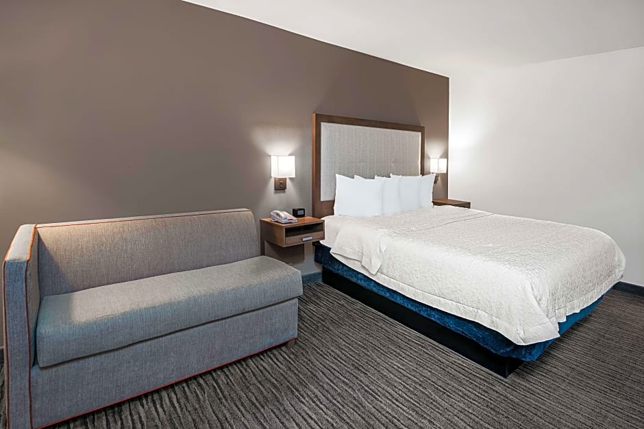 The Hampton Inn & Suites San Marcos offers a range of room options including King Study, Queen Room, King Room Hearing Accessible with Bathtub, King Studio with Sofa Bed, and Queen Studio. All rooms are non-smoking and vary in size from 301 sqft to 344 sqft. Occupancy ranges from 2 adults and 1 child to 5 adults and 4 children, depending on the room type. Bed sizes include King and Queen size beds, with some rooms also offering a sofa bed.