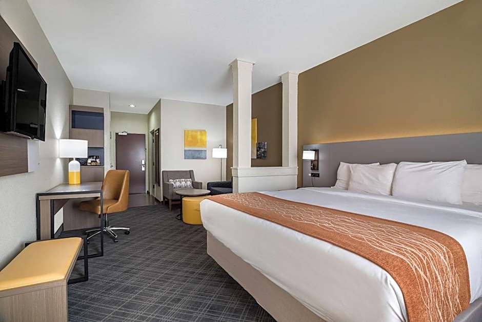 The Comfort Inn & Suites Victoria North offers a variety of room options including King Suites, Queen Rooms with two queen beds, and King Rooms. All rooms are non-smoking and have a room size of either 301 sqft or 323 sqft, except for the King Rooms which are 205 sqft. The King Suites and Deluxe King Suite with Sofa Bed can accommodate up to 4 adults and 3 children, while the Queen Rooms and King Rooms can accommodate up to 4 adults and 3 children, or 2 adults and 1 child, respectively. The beds range from 1 x King size bed to 2 x Queen size beds.