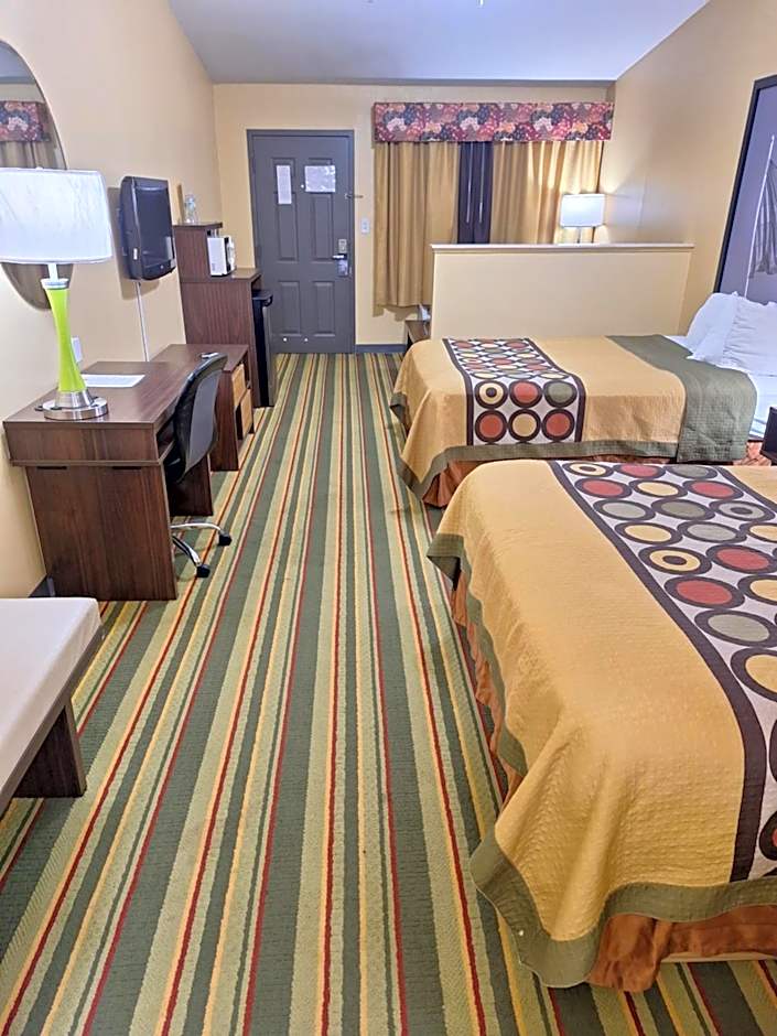 The Super 8 by Wyndham Weslaco hotel offers a range of room types including family rooms and suites. All rooms are non-smoking. Occupancy ranges from 2 adults and 1 child up to 5 adults and 4 children. Bed sizes include queen and king size beds, and some rooms also have sofa beds. The room sizes vary and some mobility accessible rooms have roll-in showers.