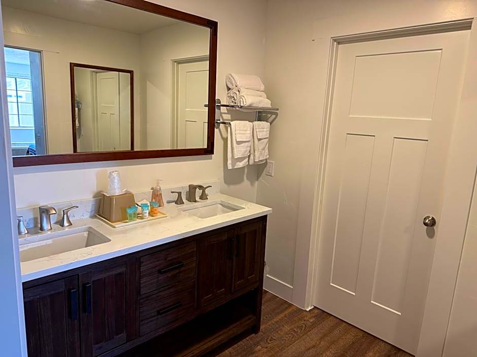 This suite features two flat-screen satellite TV sets and a full size refrigerator and microwave. An private bathroom with a hairdryer is also included. This suite is ideal for larger families or groups.