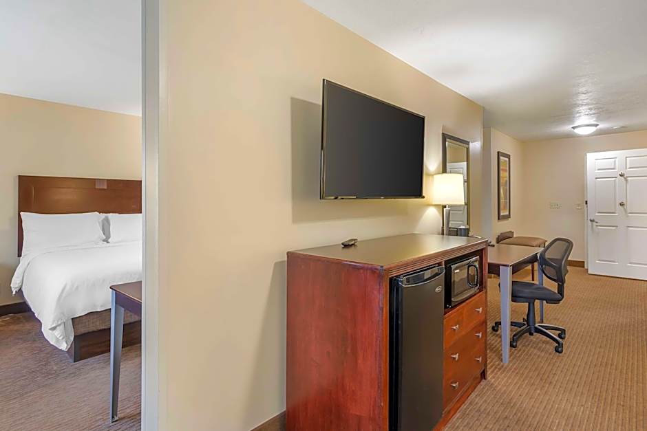 This mobility accessible room offers a flat screen television and a private bathroom with a roll-in shower. A refrigerator, a work desk, and in-room coffee/teamaker are also included.