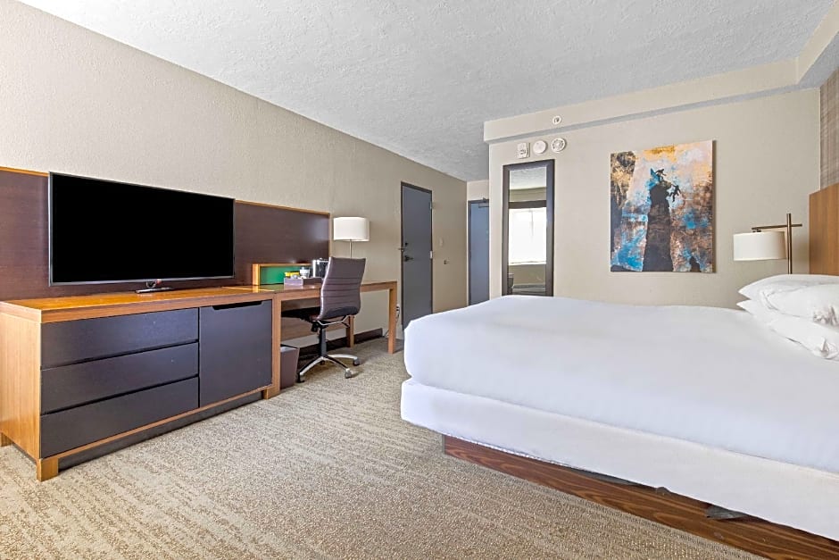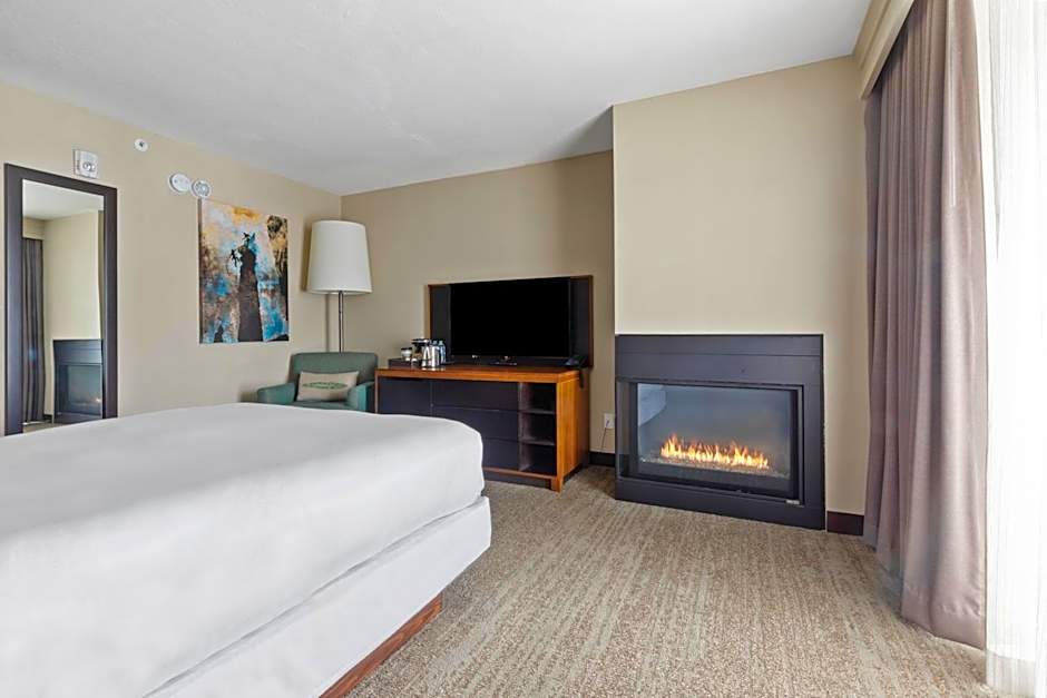 At the DoubleTree by Hilton Park City - The Yarrow, there are King Junior Suites, Queen Rooms with Two Queen Beds, King Rooms with Fireplace, and King Kitchenettes available. All rooms are non-smoking and have an occupancy of either 4 adults and 3 children or 3 adults and 2 children. The room sizes are 301 sqft for the King Junior Suite and King Rooms with Fireplace, and 355 sqft for the Queen Rooms with Two Queen Beds. Each room has either 1 King size bed or 2 Queen size beds.